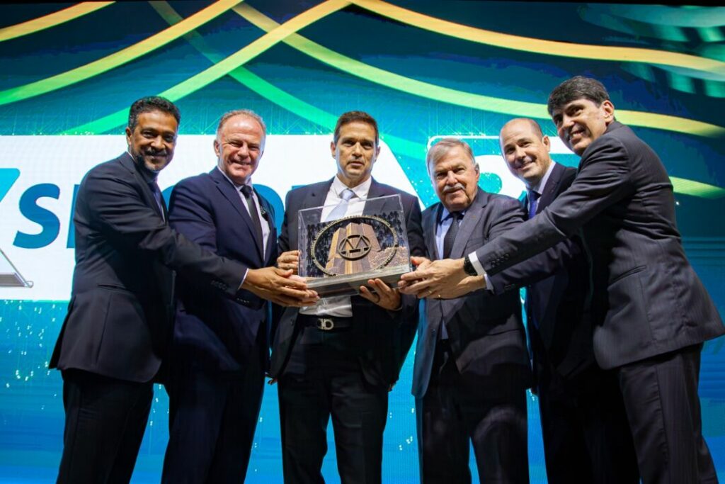 O prefeito de Vitória, Lorenzo Pazolini, e o presidente da Assembleia Legislativa do estado do Espírito Santo, Marcelo Santos, também discursaram no evento celebrativo do Sicoob.