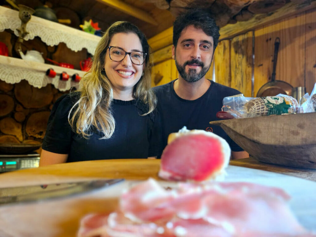 Thais e o marido Rafael se dedicam exclusivamente à produção de socol e ao atendimento aos turistas