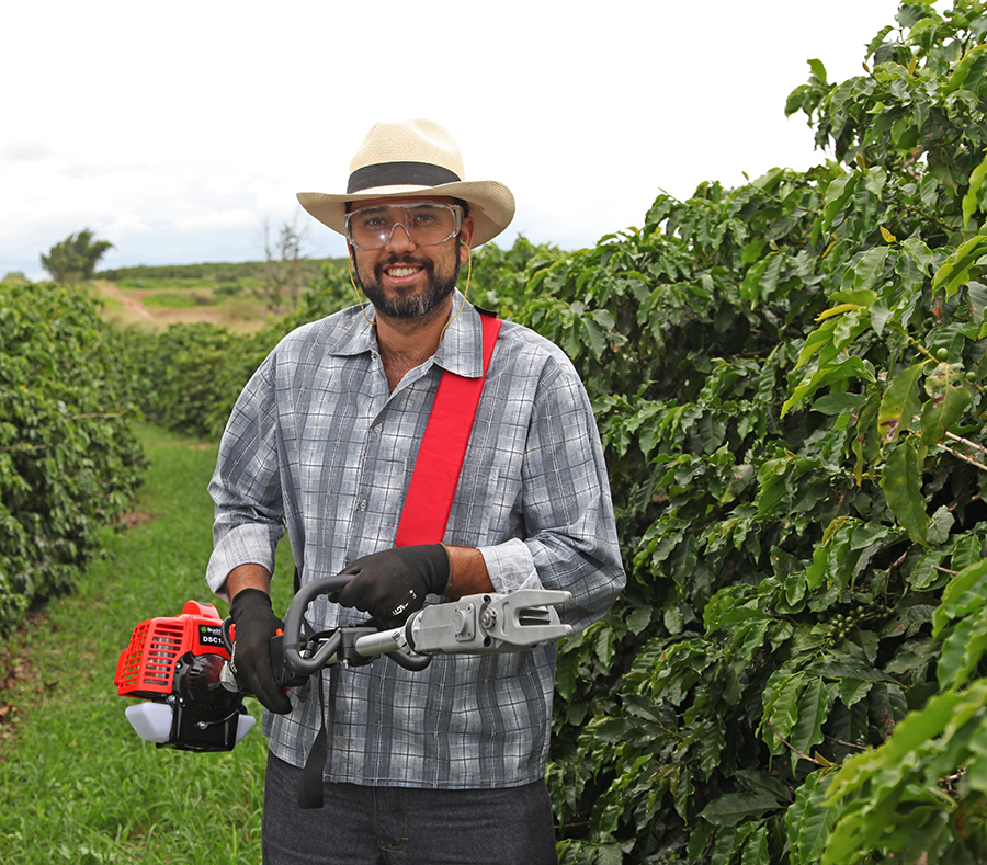 O equipamento se chama Brudden DSC-18 – Derriçadeira Seletiva de Café, lançada no fim de 2018, capaz de coletar até 28 kg de café por hora, por meio de um sistema de vibração, utilizando lonas no solo do cafezal. “A proposta do projeto é melhorar a produtividade da mão de obra e diminuir o custo na colheita de café”, afirma Duque.