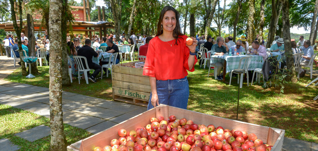 A secretária de Turismo de Fraiburgo falou que a produção de maçã movimenta o turismo da cidade