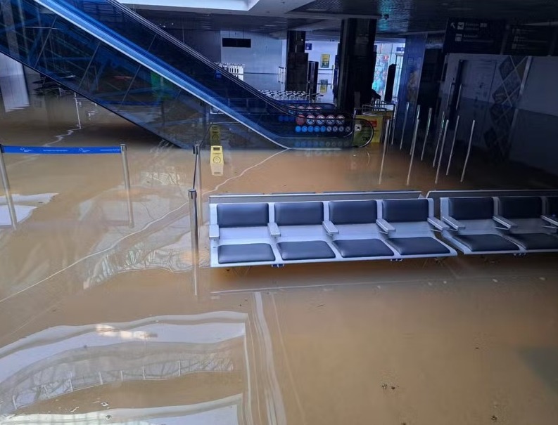 Áreas internas do Aeroporto Salgado Filho estão totalmente alagadas