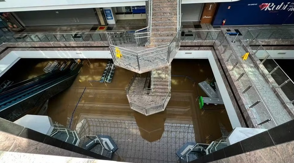 As águas invadiram o primeiro piso do aerporto de Porto Alegre