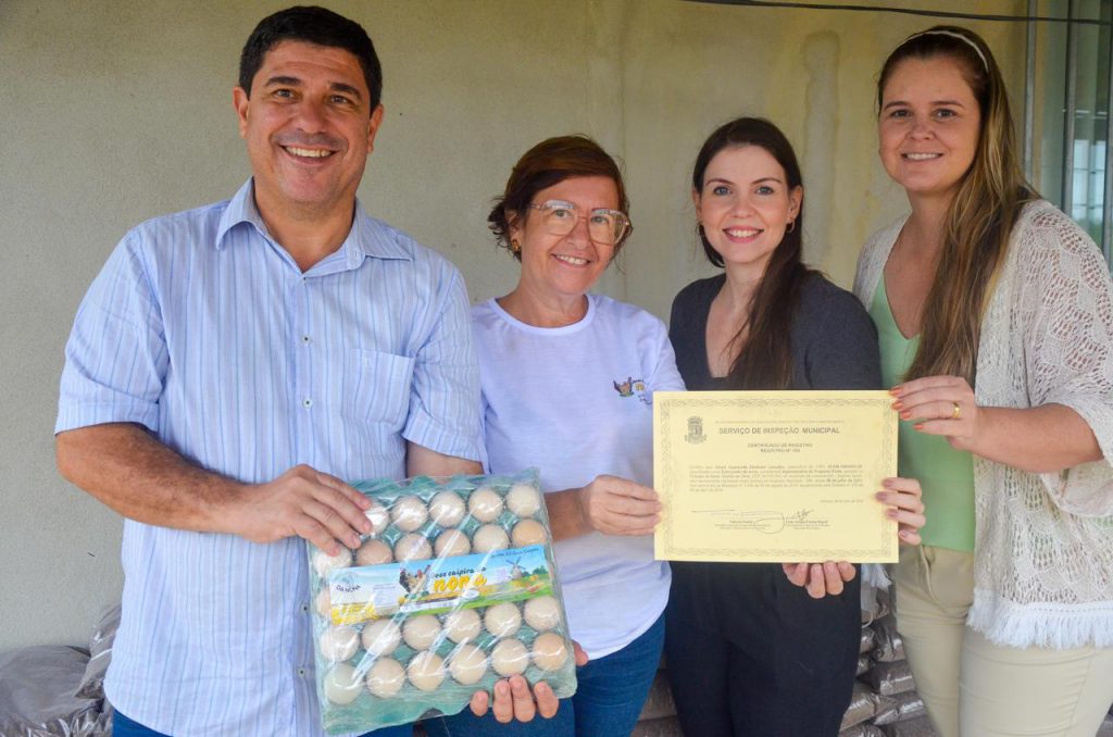 O secretário de Agricultura, Fabrício Fardin, esteve no empreendimento realizando a entrega do certificado de registro do Serviço de Inspeção Municipal (S.I.M.) e comentou da importância da regularização das agroindústrias.