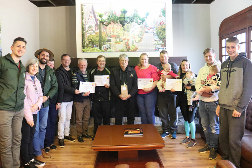 Na manhã desta segunda-feira (03), o prefeito de Gramado (RS), Nestor Tissot, e o secretário municipal da Agricultura, Rafael Ronsoni, receberam os representantes da Locando Moscerino e dos Laticínios Ruppenthal para entregar os certificados conquistados pelas agroindústrias gramadenses durante sua participação no 2º Concurso de Queijos Artesanais Doce de Leite do Rio Grande do Sul.