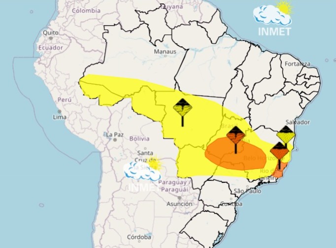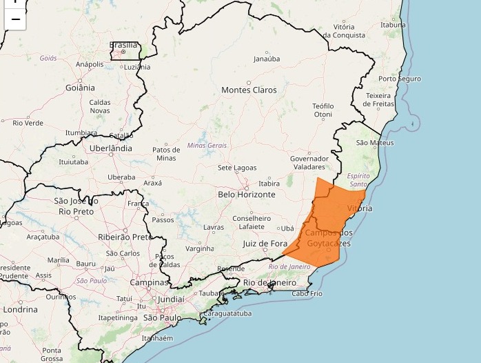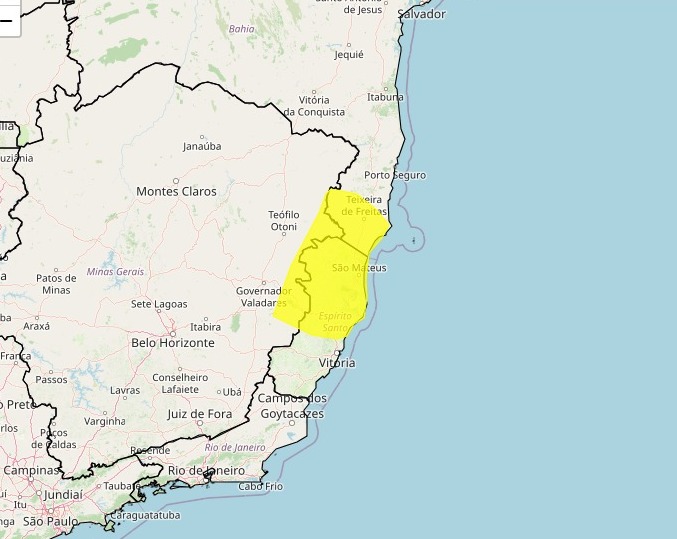 CEMADEN – Outro alerta vem do Centro Nacional de Monitoramento e Alertas de Desastres Naturais (Cemaden), que classifica como “moderada” a possibilidade de eventos hidrológicos no Estado do Espírito Santo, devido à previsão de pancadas de chuva que podem ser localmente fortes, favorecendo a ocorrência de enxurradas urbanas, alagamentos pontuais em áreas baixas e inundações em pequenas bacias, especialmente em regiões densamente ocupadas e com alta impermeabilização do solo.