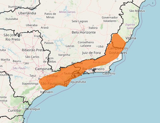 O Instituto Nacional de Meteorologia (Inmet) também está com avisos meteorológicos ativos para o Espírito Santo, sendo um de perigo, de cor laranja, com previsão de chuva de até 100 milímetros por dia para diversas cidades das regiões Sul, Serrana e Caparaó.