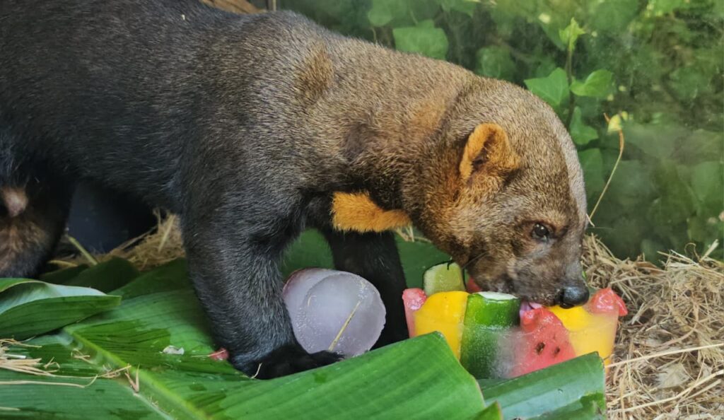 Nesta sexta-feira (6), quando as temperaturas ultrapassaram os 30° C na Serra Gaúcha, o puma ganhou um picolé de carne. Já os macacos-barrigudo e a irara, receberam apetitosos picolés de frutas e legumes, como maçã, mamão, pepino, beterraba, manga e melancia.