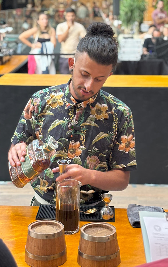 Os coquetéis que apresentou e renderam o título da competição representavam algumas das etapas do processo de produção da cachaça, como colheita, fermentação e destilação. Para dar equilíbrio aos drinks, ele utilizou ingredientes como caldo e melaço de cana-de-açúcar, hidromel feito de casca de café, vinho fortificado espanhol, CO2 para gaseificação de uma das bebidas, blend de cachaças envelhecidas em carvalho americano e em jequitibá, cajuína destilada a frio, ácido lático, uísque e, claro, café especial brasileiro.