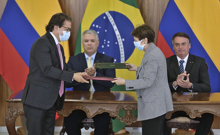 O Ministério da Agricultura, Pecuária e Abastecimento do Brasil e o Ministério da Agricultura e Desenvolvimento Rural da Colômbia assinaram nesta terça-feira (19) um Memorando de Entendimento para fortalecer a cooperação técnica em diversas áreas da agricultura, pecuária, aquicultura e pesca entre os dois países. O documento foi assinado pela ministra brasileira, Tereza Cristina, e o ministro colombiano, Rodolfo Enrique Zea Navarro, em cerimônia realizada no Palácio do Planalto, com a presença dos presidentes Jair Bolsonaro e Ivan Márquez.