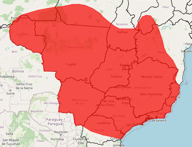 PERIGO – O Inmet está com um aviso ativo de onda de calor intenso com o grau considerado de “Grande Perigo”, até as 23h59 da próxima sexta-feira (17), para a região brasileira destacada em vermelho na imagem abaixo.