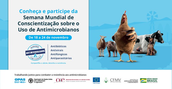 Com o slogan ‘Antimicrobianos: Manuseie com Cuidado – compartilhe o alerta, detenha a resistência!’, a Aliança Tripartite – Organização das Nações Unidas para Agricultura e Alimentação (FAO), Organização Mundial de Saúde Animal (OIE) e Organização Mundial de Saúde (OMS) – promove, de 18 a 24 de novembro, a Semana Mundial de Conscientização sobre o Uso de Antimicrobianos (WAAW 2021 – sigla em inglês).