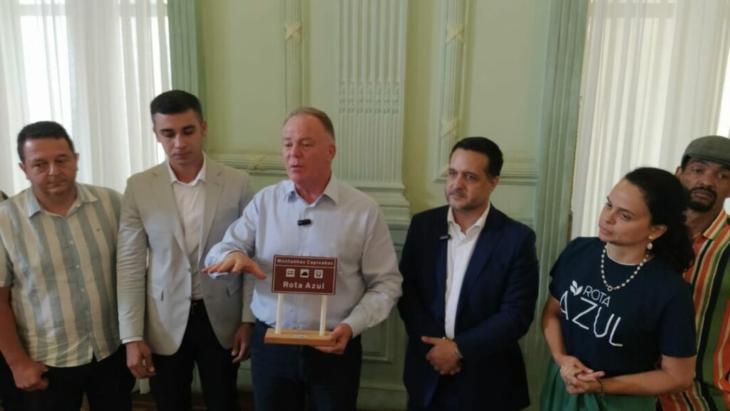 O governador Renato Casagrande (PSB) sancionou, na amanhã de hoje (28), no Palácio Anchieta, o Projeto de Lei (PL) 9/2023, de autoria do deputado estadual Fabrício Gandini (Cidadania), que foi aprovado pela Assembleia Legislativa e criou a Rota Azul, um estímulo a mais para desenvolver o turismo nos municípios de Domingos Martins, Venda Nova do Imigrante e Castelo, na Região Serrana do Estado.