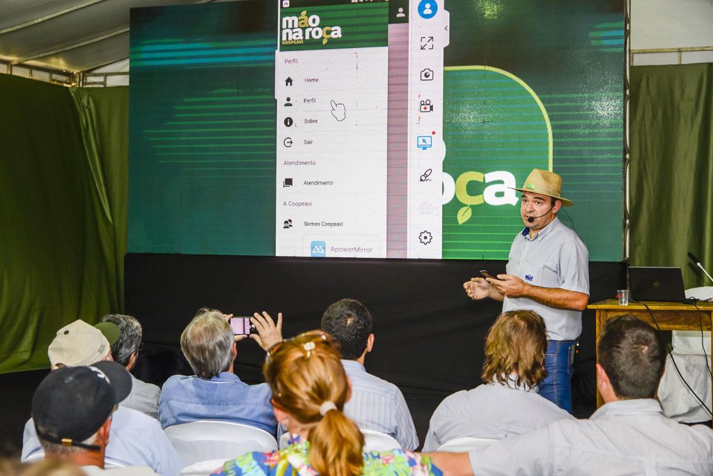 O gerente do Núcleo de Inteligência Comercial da Coopeavi, Ivanilson Geraldo Scalzer, fez uma demonstração do uso do “Mão na Roça” com a presença do público. Ele mostrou como as dúvidas dos associados são processadas no sistema e de que forma acontece o atendimento on-line.