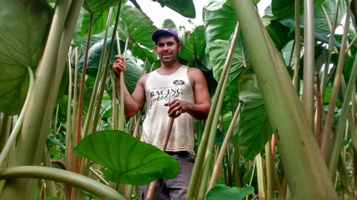 Agricultor Rogério Kruger em sua lavoura de inhame em Santa Leopoldina