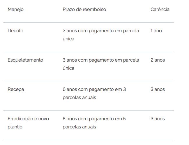 Os prazos para reembolso do financiamento também seguem o tipo de manejo que será utilizado.