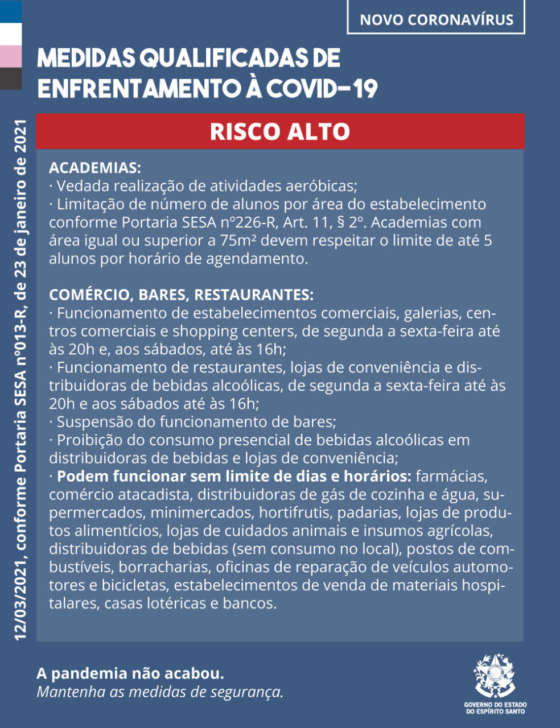 Dezessete municípios capixabas voltam para o Risco Alto de Covid-19