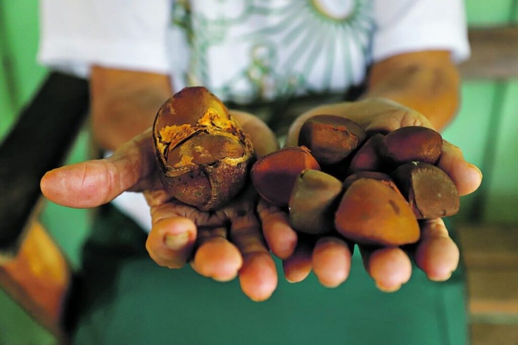 No quintal da família de Iracema Teles (foto), na Ilha do Combu, região sul de Belém (PA), as mulheres ribeirinhas garantem frutos de andiroba de abril a setembro. Na Associação de Mulheres Extrativistas da Ilha do Combu (AME), a produção do óleo do fruto – utilizado pelos indígenas para cura de doenças inflamatórias e de pele – é artesanal e segue princípios de manejo consciente. Parte das sementes é deixada no solo para regenerar a floresta. O óleo de andiroba, valorizado pela indústria de biocosméticos, rende de 30 a 40 litros por mês.