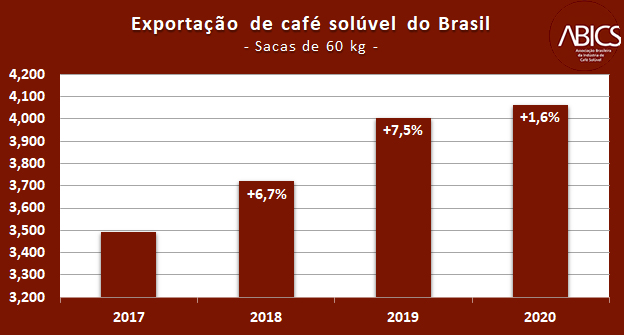 O Brasil nunca exportou tanto café, incluindo solúvel, como em 2020, ano de pandemia mundial. Com o equivalente superior a 4 milhões de sacas do produto industrializado remetidas a mais de 100 países, a receita cambial obtida foi de aproximadamente US$ 600 milhões. “Muito competitivo, com câmbio favorável e consumo em alta, projetávamos estimativas otimistas para 2021, que iriam desde a manutenção do volume exportado a até um crescimento de 3%, mas o cenário mudou”, revela Aguinaldo Lima, diretor de Relações Institucionais da Abics.