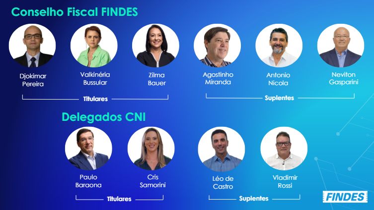 Além deles, também foram eleitos os membros titulares do Conselho Fiscal da Findes (Djokimar Pereira, Valkinéria Bussular e Zilma Bauer) e os suplentes (Antonio Nicola, Augostinho Miranda e Neviton Gasparini); os delegados titulares representantes na Confederação Nacional da Indústria (CNI) (Paulo Baraona e Cris Samorini) e os suplentes (Léo de Castro e Vladmir Rossi).