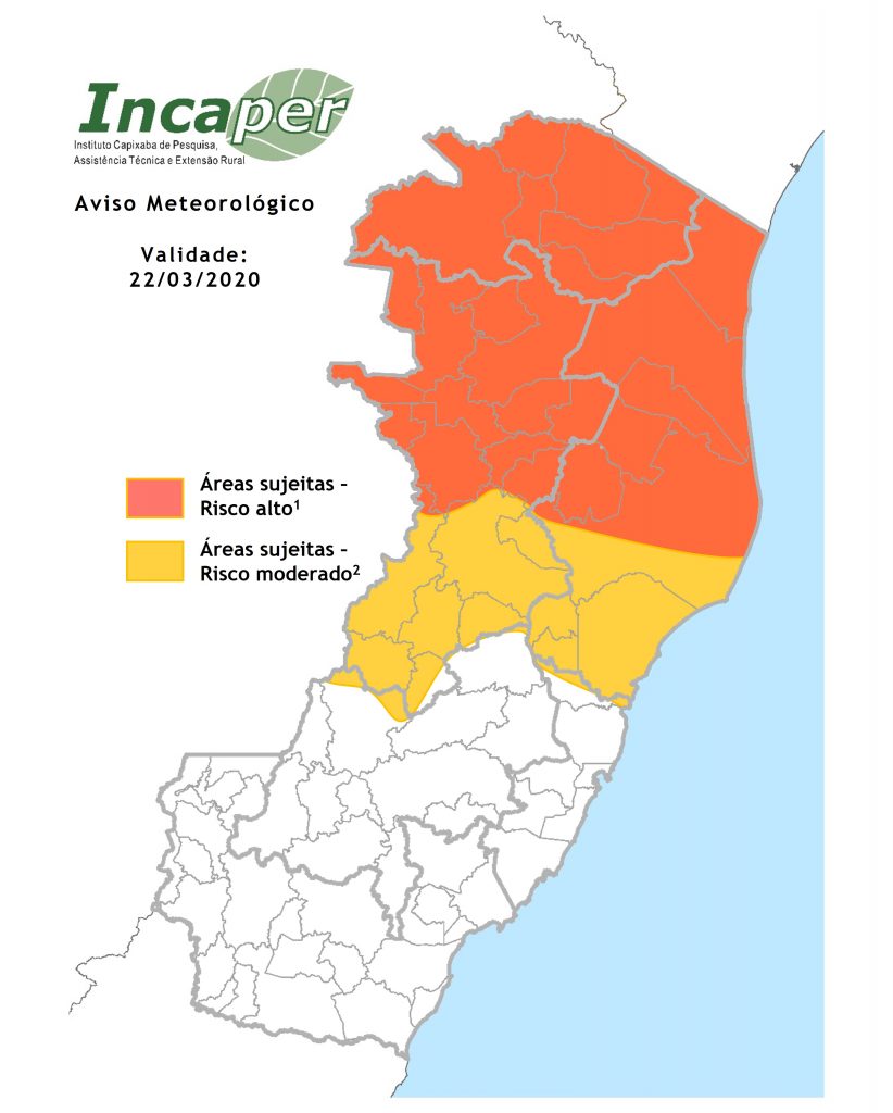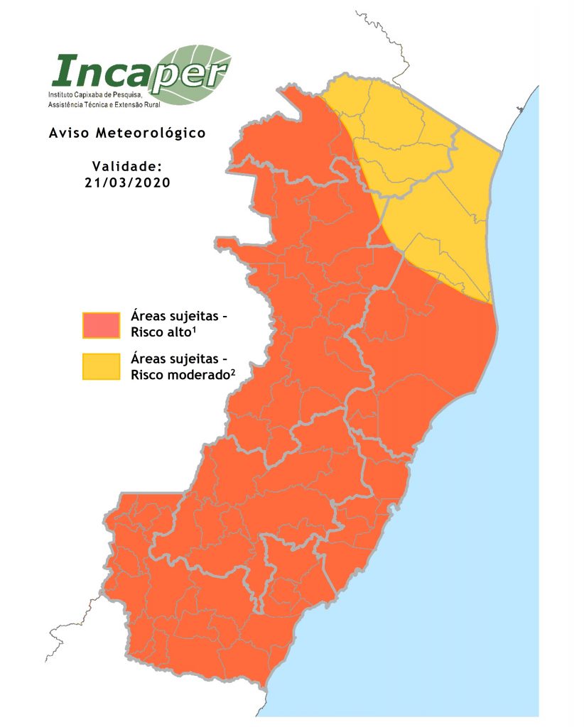 O fim de semana será mudanças nas condições do tempo no Espírito Santo. A passagem de uma frente fria pelo litoral deixa o tempo instável, com previsão de chuva ao longo do dia. Há risco de temporais isolados em quase todas as regiões capixabas. Por conta disso, o Instituto Capixaba de Pesquisa, Assistência Técnica e Extensão Rural (Incaper) emitiu um Aviso Meteorológico Especial.