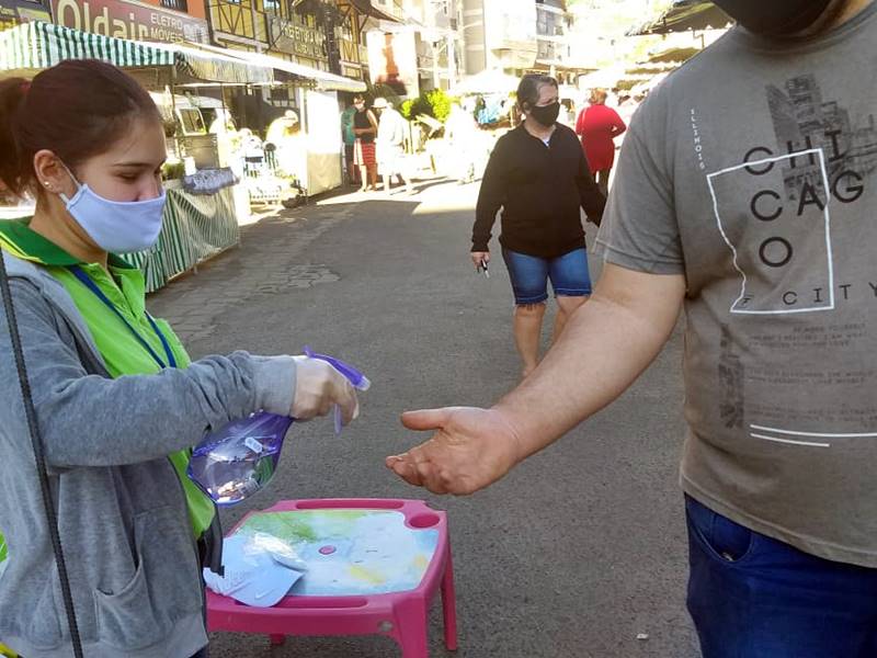 Fiscais dão orientação e ofertam álcool em gel para feirantes e consumidores