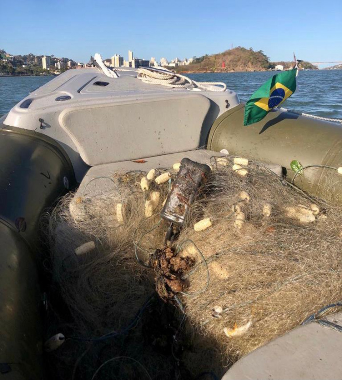 Fiscalização Ambiental de Vitória apreende rede de pesca com 300 metros