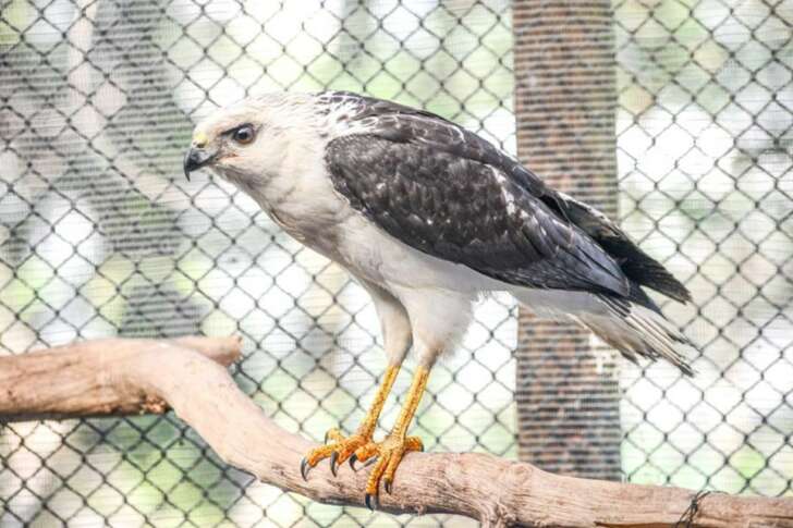 O gavião-pombo chegou ao Cetras do Iema, que é operacionalizado pelo Instituto de Pesquisa e Reabilitação de Animais Marinhos (Ipram), há cerca de 15 dias. “O animal estava debilitado, apresentava dificuldades para se locomover e para comer. Após passar por uma bateria de exames, foi constatado que estava com uma fratura na fíbula direita”, explicou a médica-veterinária do Ipram, Thassiane Targino.