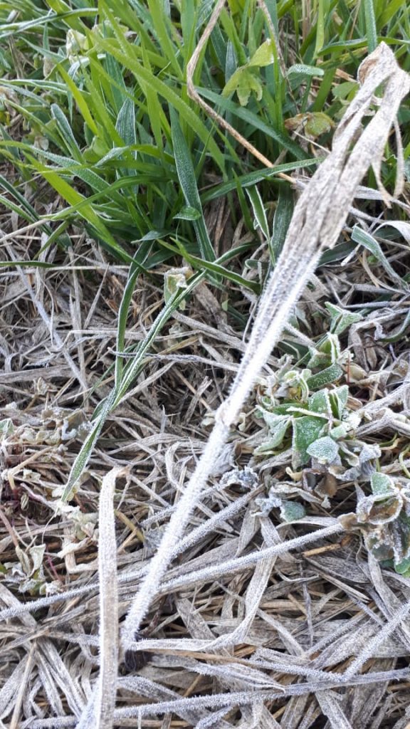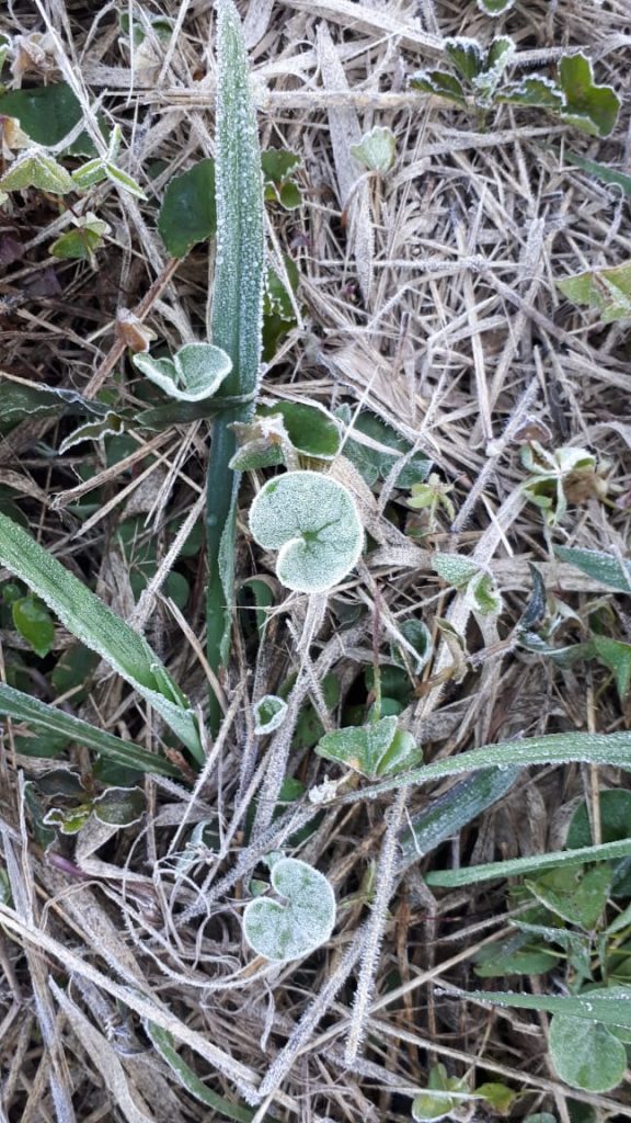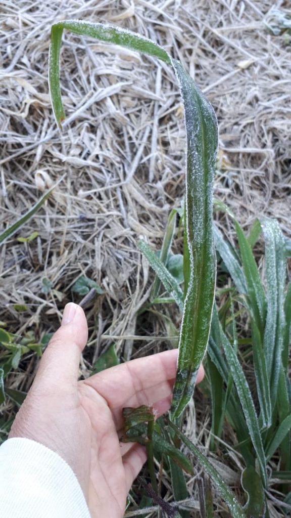 Já em Pedra Azul, no município de Domingos Martins, a moradora Eliene Cezati fotografou a vegetação também coberta pela fina camada de gelo da madrugada. E você? Também registrou gelo na sua região? Envie para a gente: revistanegociorural@gmail.com