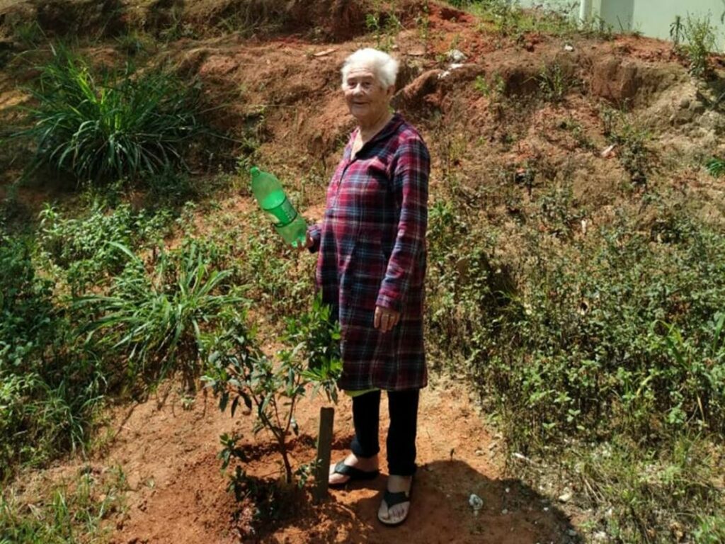 Idosa de 102 anos comemora Dia da Árvore e início da Primavera plantando uma árvore