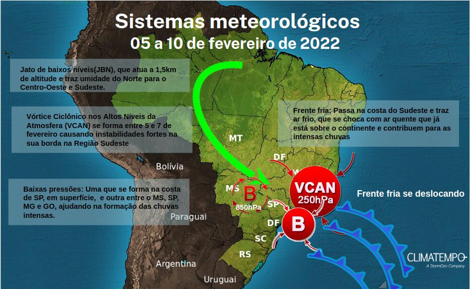 Em poucos dias, muitas cidades da região podem registrar acumulados da ordem de 100 a 300 milímetros. A Climatempo alerta para o alto risco de enchentes e de deslizamentos de terra. As precipitações do Sudeste do país durante esse período se devem à chegada de uma frente fria pela costa, mais à formação de uma área de baixa pressão atmosférica na costa de São Paulo.