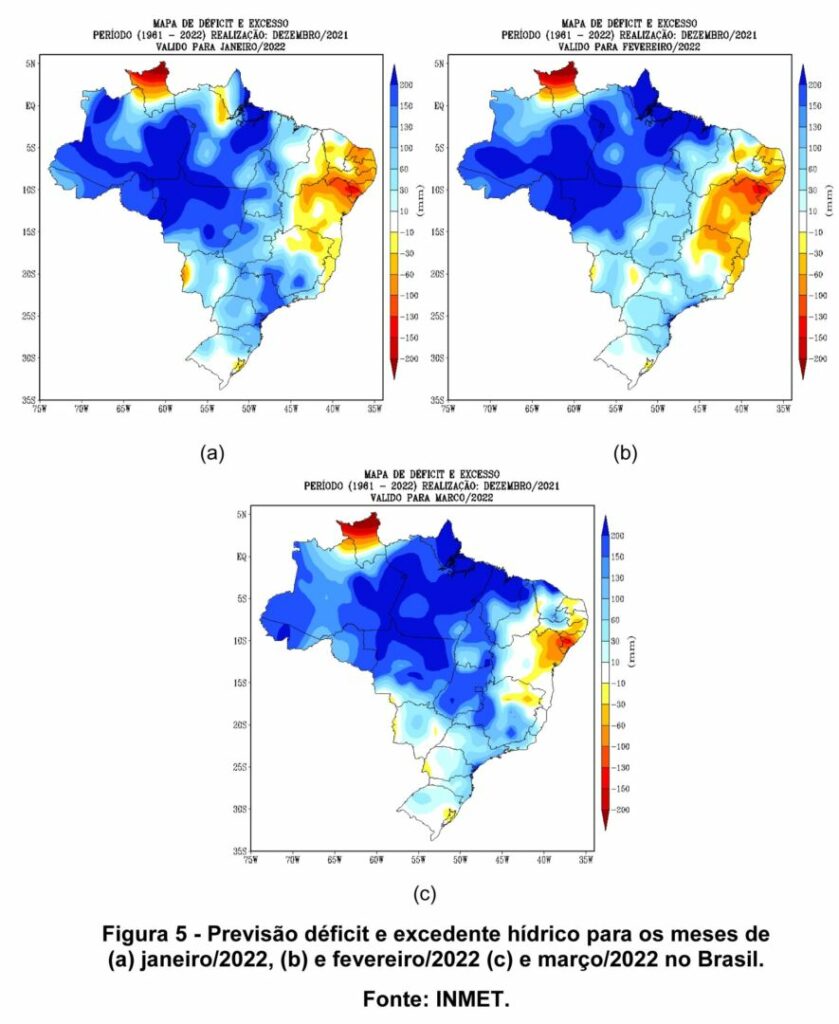 “O pasto precisa de 60 dias de chuva, em torno de 200 ml para se estabelecer, e as tendências de chuva, segundo boletim agroclimatológico do INMET (áreas em azul nos mapas), garantem que até o dia 15 de fevereiro será possível plantar pastagem, e assim, aproveitar ao máximo a janela”, afirma o zootecnista da Embrapa, Haroldo Pires de Queiroz.