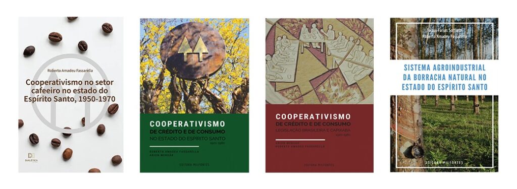 OUTRAS OBRAS – Além do livro sobre a cafeicultura, Roberto Fassarella é coautor de três obras voltadas a temas do cooperativismo. Os livros “Cooperativismo de Crédito e de Consumo no estado do Espírito Santo (1920-1980)” e “Cooperativismo de Crédito e de Consumo: legislação brasileira e capixaba”, publicados em 2020 pela Editora Milfontes, foram escritos em parceria com o doutor em História Social das Relações Políticas Arion Mergár.