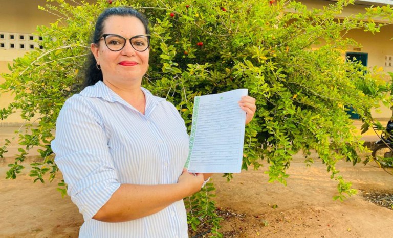 Danielle Queiroz de Oliveira recebeu o Título de Domínio do lote no assentamento Maísa, em Mossoró (RN)