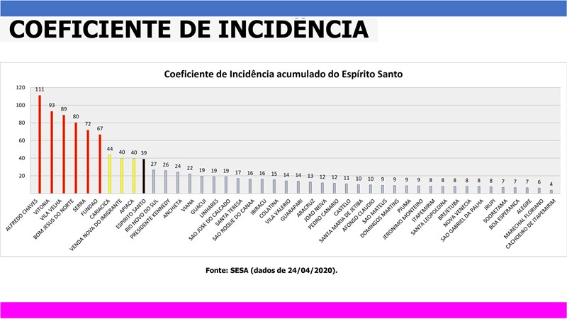 - Os demais municípios capixabas estão abaixo de 39/100 mil