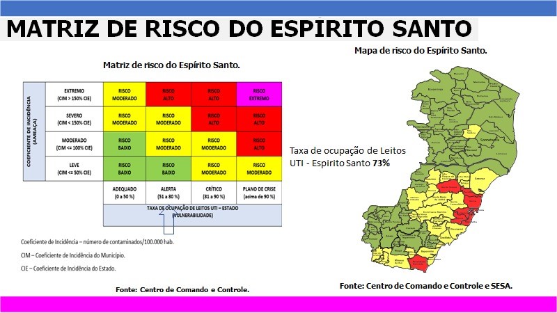 Com a mudança na classificação de Presidente Kennedy, os municípios limítrofes passam automaticamente para o Risco Moderado. Desta forma, o Espírito Santo tem 24 cidades em Risco Moderado: Afonso Claudio, Alfredo Chaves, Anchieta, Apiacá, Aracruz, Atílio Vivácqua, Bom Jesus do Norte, Domingos Martins, Guarapari, Ibiraçu, Itaguaçu, Itapemirim, Itarana, João Neiva, Marataízes, Marechal Floriano, Mimoso do Sul, Piúma, Santa Leopoldina, Santa Maria de Jetibá, São José do Calçado, São Roque do Canaã, Venda Nova do Imigrante e Vila Valério. Outros 46 municípios capixabas seguem com o Risco Baixo.