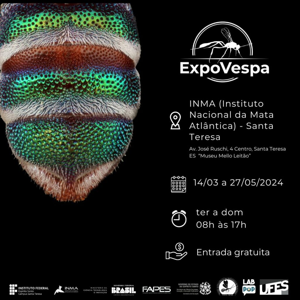 Organizada pelo Laboratório de Popularização da Ciência (LabPop) da Ufes em parceria com o Núcleo de Excelência em Sistemática de Bethylidaee (Nesb), a exposição tem apoio do INMA e do Instituto Federal do Espírito Santo (Ifes) – Campus Santa Teresa.