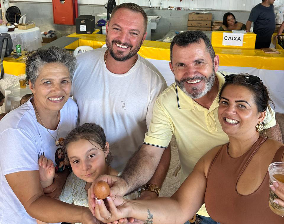A história teve início durante o leilão da festa, que ocorreu ontem (08). Ali, um casal de galizés foi arrematado por R$ 190,00 pelo empresário Fábio Schuantz, o Fabinho. Pouco tempo depois, a galinha botou um ovo dentro de uma caixa de tomate – onde ela estava com o galo – pequeno, delicado e aparentemente comum. Mas Fabinho enxergou nele algo diferente: uma oportunidade de brincadeira… e de solidariedade.