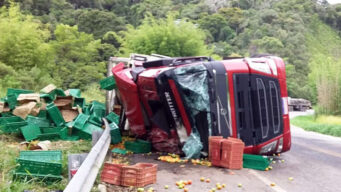 Carga de tomates se espalha na BR-262 em acidente com carreta