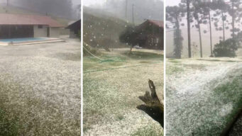 Chuva de granizo alivia o calor em Domingos Martins