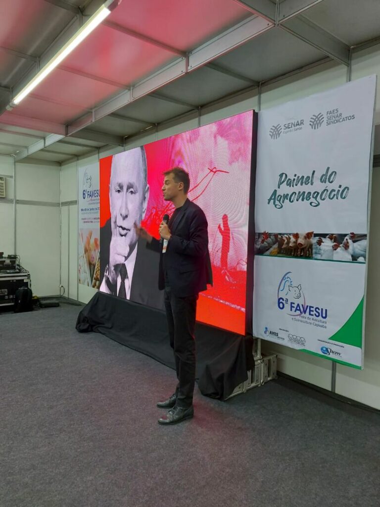 Palestrante em mais de 150 eventos por ano como o TEDx no Brasil, Europa, Estados Unidos e América do Sul, Arthur retornou à Favesu para falar sobre como os setores avícola e suinícola devem seguir produzindo num mundo que ainda convive com uma pandemia e que apresenta um cenário político movimentado.