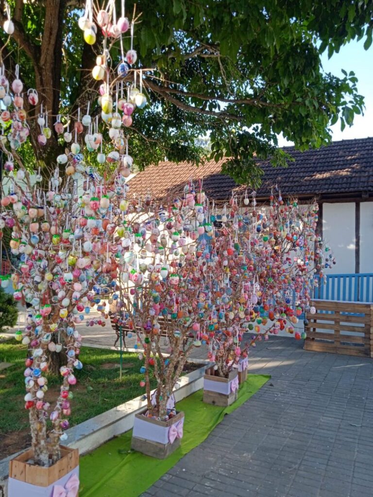 Entre os destaques, está o Osterbaum — árvores decoradas com mais de 15 mil casquinhas pintadas por crianças das redes municipal e estadual. Há ainda elementos típicos como os ovos cozidos com a raiz do Eierkraut, que dá às cascas uma coloração vibrante, e oficinas de pintura de ovos artesanais, que preservam saberes passados de geração em geração.