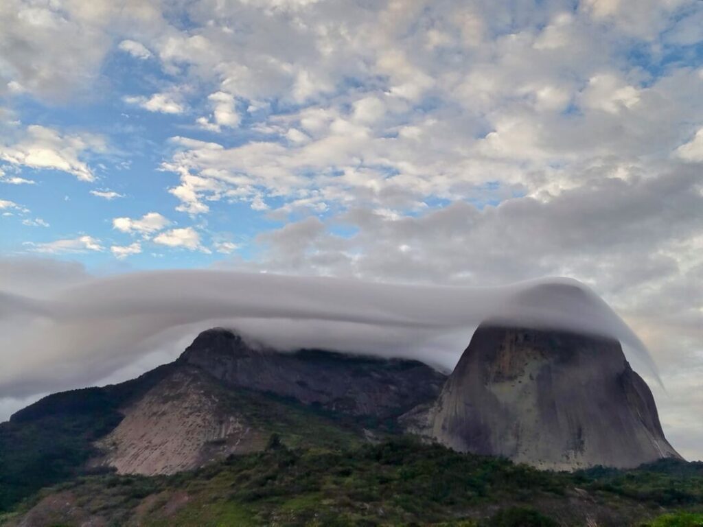 Quem presenciou a cena foi a moradora de Pedra Azul, Gilcelia Aparecida de Sousa, 40, enquanto fazia uma caminhada matinal. “Eu vi, diante dos meus olhos, um dos momentos mais lindos em meio às belezas naturais de Pedra Azul. Saí para caminhar sem celular e, quando olhei para a Pedra Azul, percebi que estavam se formando nuvens”, relata.