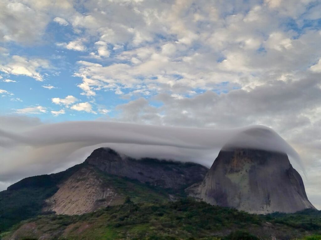 Esse tipo de formação ocorre quando o vento úmido sopra em direção a uma elevação abrupta, como uma montanha ou um grande rochedo, forçando o ar a subir. “Ao subir, o ar se expande e esfria, e se houver umidade suficiente, o vapor d’água condensa e forma nuvens. Essa condensação geralmente ocorre no topo ou na encosta da montanha”, explicou Borges.