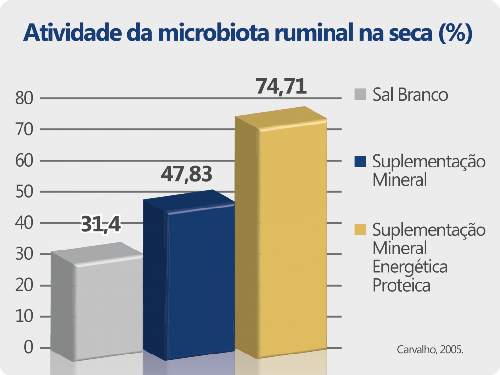 Pompei explica que é comum e esperado em pastagens tropicais que, com a entrada do período seco, ocorra uma queda gradativa nas concentrações de alguns nutrientes, vitais para os ruminantes, como proteína bruta (PB) que pode apresentar uma redução de até 50%, os macro e micro minerais com queda em até 80%, e também da energia, em menor proporção, porém não menos importante de até 20%.