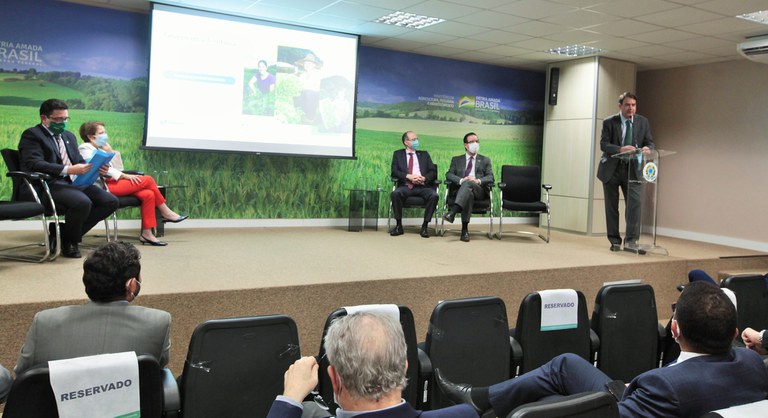 Participaram também do lançamento o secretário-executivo do Mapa, Marcos Montes, o presidente da Embrapa, Celso Moretti, e o secretário adjunto de Assuntos Fundiários do Mapa, Leandro Mota.