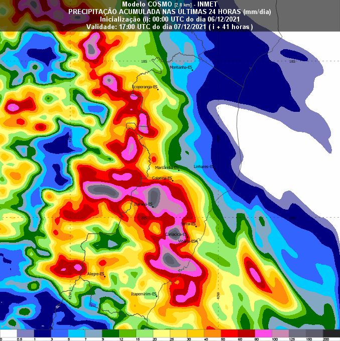 Para a quarta-feira (08) são esperados fortes temporais, inclusive na Grande Vitória, já no início do dia. A chuva vai persistir até o fim da semana, de forma expressiva. De acordo com mapas meteorológicos do Instituto Nacional de Meteorologia (Inmet), há possibilidade de chuva de mais de 100 milímetros em cidades capixabas, como Cariacica, municípios da Região Serrana e em Itarana.