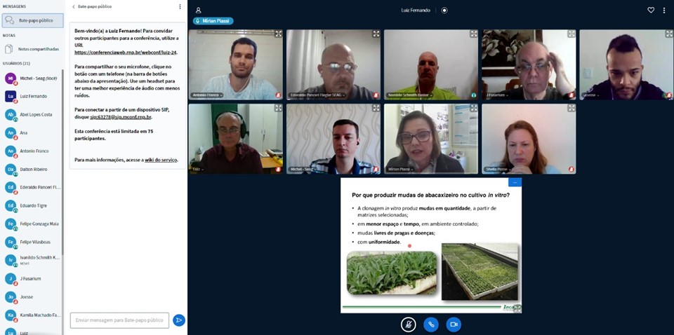 “Entendemos que esta modalidade inovadora de capacitação está sendo muito positiva levando em consideração o retorno que os participantes estão dando e a abrangência da ação, que está ultrapassando 70% dos municípios envolvidos com a cultura do abacaxi. A tendência é estendermos esta modalidade de para as principais culturas frutícolas no Espírito Santo, principalmente durante os efeitos do desdobramento da pandemia do coronavírus”, ressaltou o coordenador de projetos da Seag, Ederaldo Panceri Flegler.