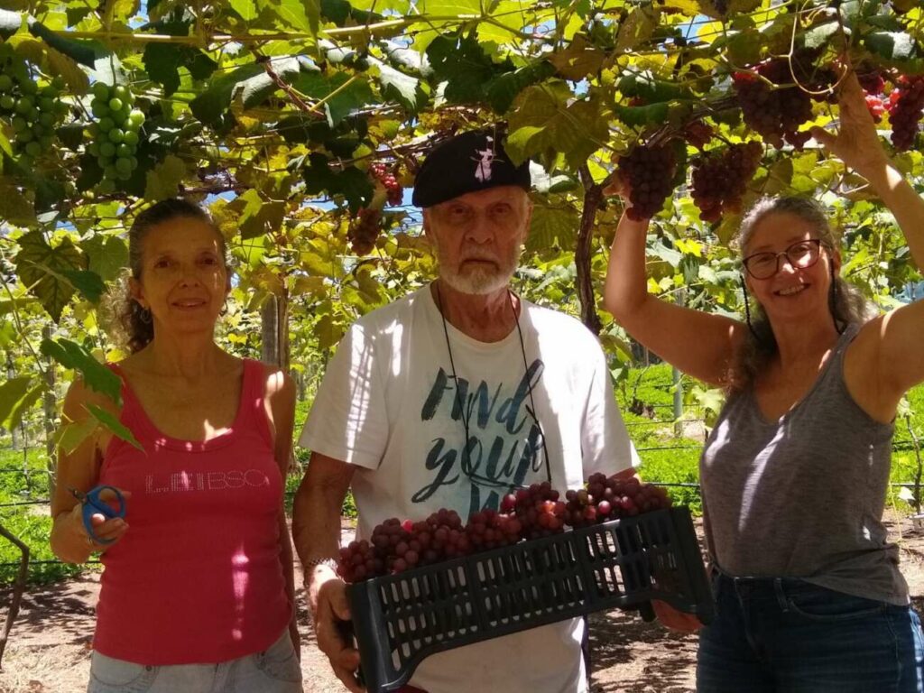 Na mesma região, em Todos os Santos, quem conseguiu realizar a colheita foi o casal José Bravim e Leila Buback Bravim. Eles são os proprietários e responsáveis pelo Sítio Rio Novo recebem visitas na propriedade e comercializam o fruto da uva nas feiras.