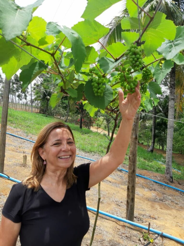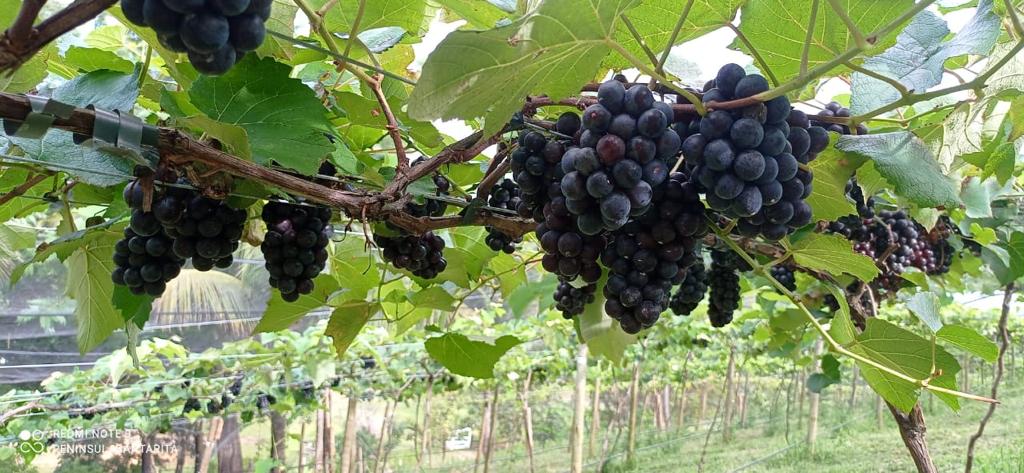A propriedade, que pertence ao Luiz Claudio Simões, anteriormente era voltada para as seringueiras, mas a uva se apresentou como uma possibilidade de variedade. Hoje, Luiz Claudio cuida da propriedade ao lado da esposta Denise Cristine e de sua cunhada, Patrícia. “É preciso valorizar o pequeno produtor que foi o foco desse projeto da prefeitura de Guarapari. Valorizar a agricultura familiar e gerar renda para os pequenos produtores”, destacou Patrícia.