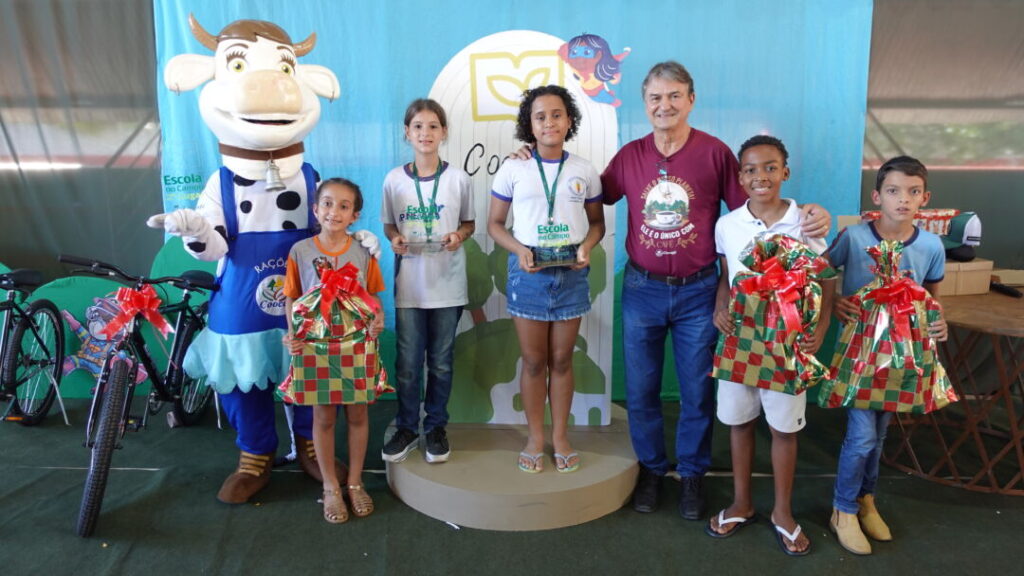 Dirigentes da Coocafé marcaram presença na tarde de diversão e premiação. O 1o lugar ficou com a estudante Micaela da Silva Bernardino, da Escola Municipal Herculano Osório Ker, do Distrito da Prata, em Lajinha. Junto ao desenho, ela escreveu a frase: “A agricultura é a raiz do progresso, o cooperativismo o tronco que sustenta.” Micaela ganhou uma bicicleta e medalha. A professora da estudante, Aline Rimes, ganhou um leitor de livros digitais (Kindle), um Kit Coocafé, e levou o troféu de 1o lugar para a escola. Os alunos que ficaram em segundo e terceiro lugares no concurso também ganharam bicicletas e medalhas, e os outros 9 premiados levaram jogos educativos. Antes da cooperativa anunciar os vencedores do concurso, os estudantes se divertiram no ginásio em brinquedos infláveis, touro mecânico e pula-pula, e ganharam lanches e picolés.
